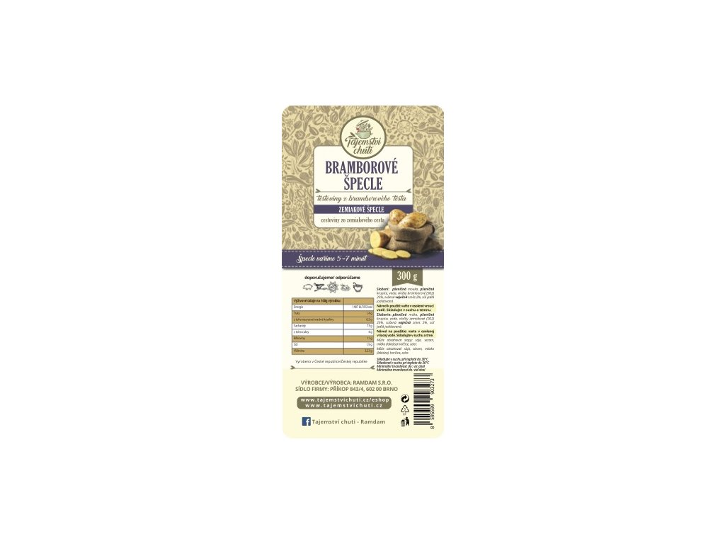 Těstoviny jsou originální ochucené vaječné sušené těstoviny s přídavkem sušených brambor, jejich sytost barev, výrazná chuť i vůně vznikly pouze přidáním sušených přísad. Jejich příprava je velmi snadná, rychlá a těstoviny mají široké využití ve studené i teplé kuchyni, oblíbenost u všech věkových kategorií a v neposlední řadě také využití v jídelníčku zdravého stravování a různých diet díky tzv. pomalým cukrům a poměrně nízké energetické hodnotě. Jsou jedinečné oproti mnoha jiným těstovinám na trhu obzvlášť svým složením z čistě přírodních surovin bez jakékoli chemické přísady. Všechny suroviny jsou pečlivě vybírány s důrazem na kvalitu a pochází z České republiky, čímž podporujeme české výrobce, dodavatele a pěstitele.
