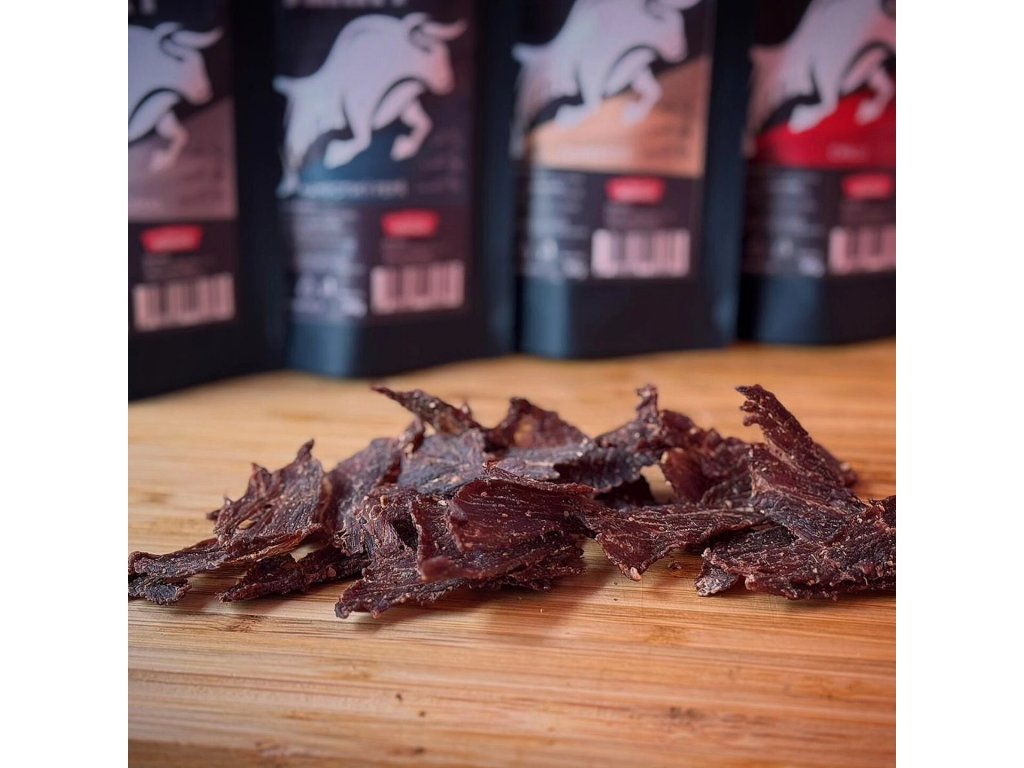SLOŽENÍ: hovězí maso, sójová omáčka, jedlá mořská sůl, směs koření