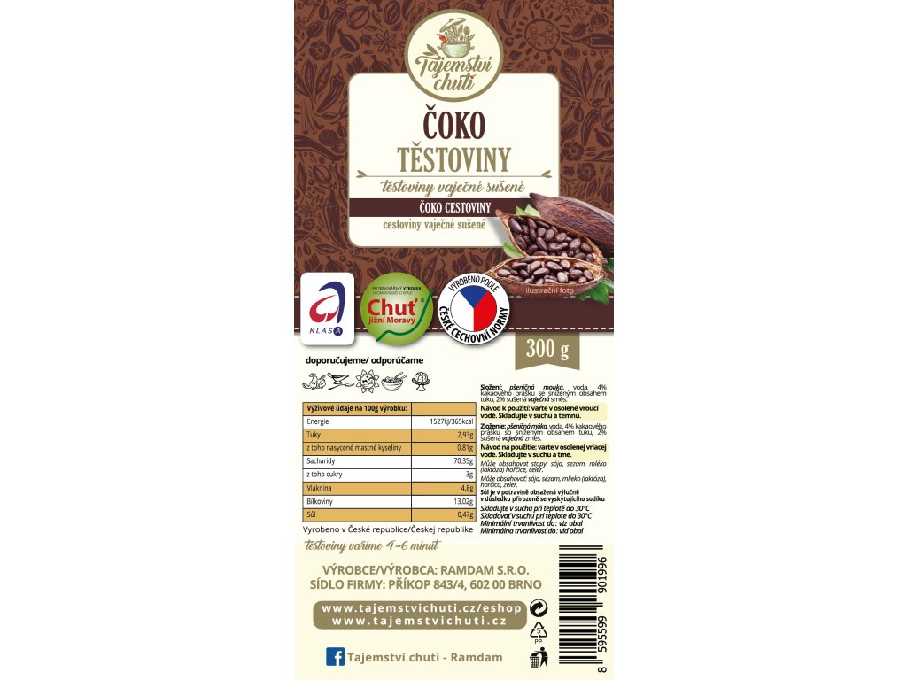 Tyto těstoviny mají označení České cechovní normy, garance kvalitní potraviny pod záštitou Potravinářské komory České republiky.