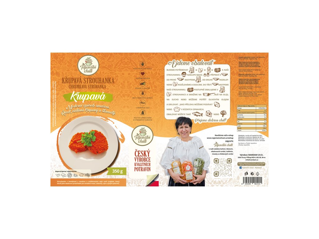 Díky modernímu technologickému zpracování tato obalovací směs během smažení nepřijímá v takovém množství tuk a vodu jako klasické strouhanky dostupné na českém trhu, kůrka zůstává křupavá a obalovaná surovina šťavnatá.