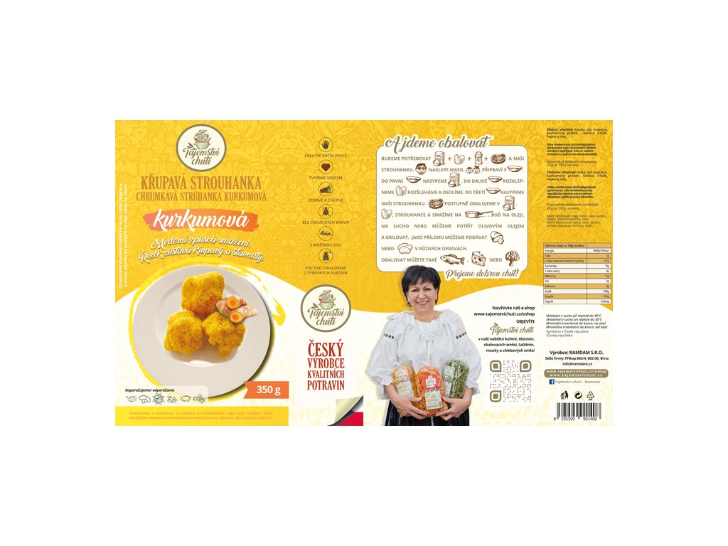 Moderní univerzální obalovací směs vyrobená podle vlastní receptury k přípravě masa, ryb, zeleniny, sýrů.Vhodná ke smažení na oleji, na sucho i na grilu.