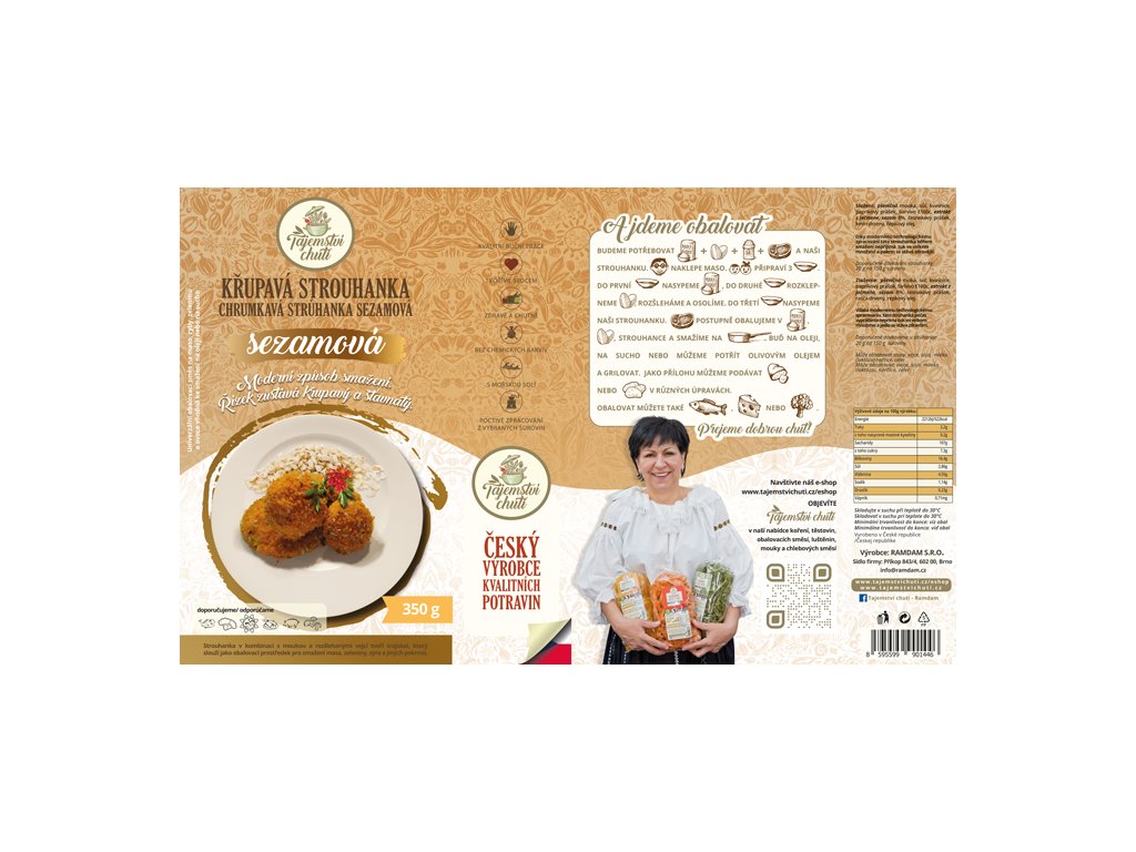 Moderní univerzální obalovací směs vyrobená podle vlastní receptury k přípravě masa, ryb, zeleniny, sýrů.Vhodná ke smažení na oleji, na sucho i na grilu.