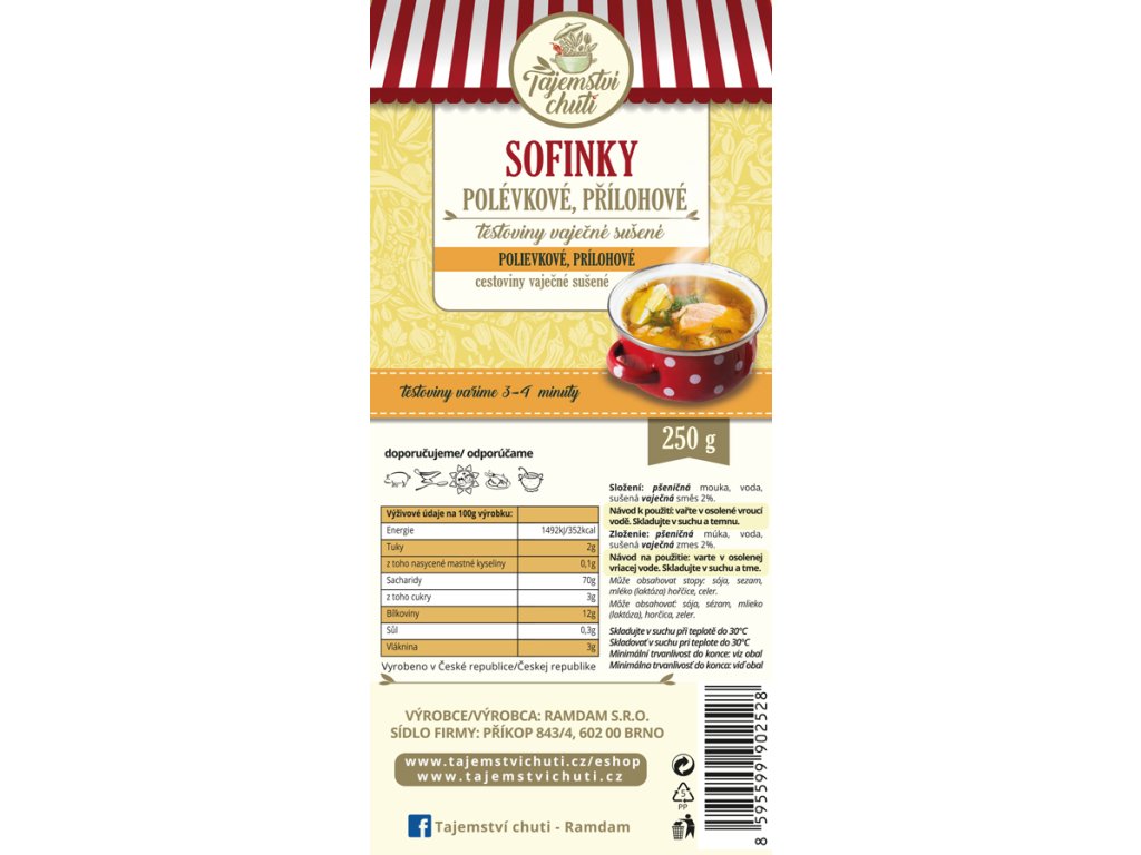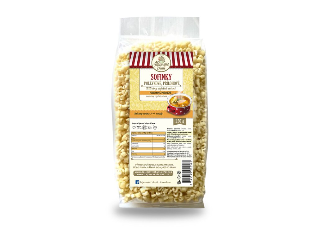 Těstoviny jsou originální ochucené vaječné sušené těstoviny. Jejich příprava je velmi snadná, rychlá a těstoviny mají široké využití ve studené i teplé kuchyni, oblíbenost u všech věkových kategorií a v neposlední řadě také využití v jídelníčku zdravého stravování a různých diet díky tzv. pomalým cukrům a poměrně nízké energetické hodnotě. Jsou jedinečné oproti mnoha jiným těstovinám na trhu obzvlášť svým složením z čistě přírodních surovin bez jakékoli chemické přísady. Všechny suroviny jsou pečlivě vybírány s důrazem na kvalitu a pochází z České republiky, čímž podporujeme české výrobce, dodavatele a pěstitele.