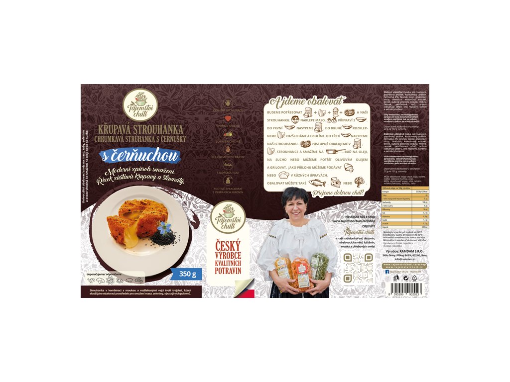Moderní univerzální obalovací směs vyrobená podle vlastní receptury k přípravě masa, ryb, zeleniny, sýrů.Vhodná ke smažení na oleji, na sucho i na grilu.